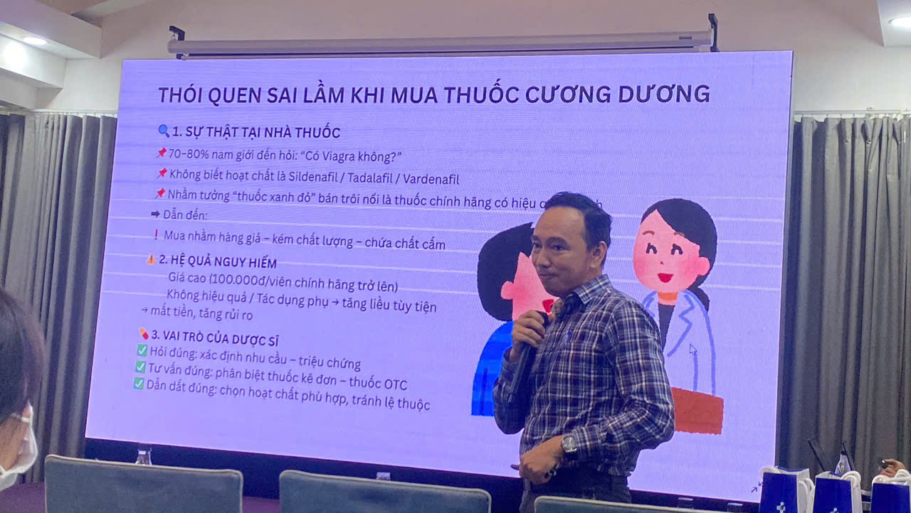 Được trình bày bởi Dược sĩ Võ Văn Mừng – Giám đốc công ty HappyCare, bài thuyết trình đã cung cấp bức tranh toàn diện về cơ chế hoạt động của nhóm thuốc PDE5 và xu hướng bệnh lý rối loạn cương dương trong thực hành lâm sàng tại Việt Nam. Những chia sẻ từ thực tiễn điều trị giúp đội ngũ chuyên môn hiểu rõ hơn về việc cá nhân hóa phác đồ và cải thiện hiệu quả điều trị.