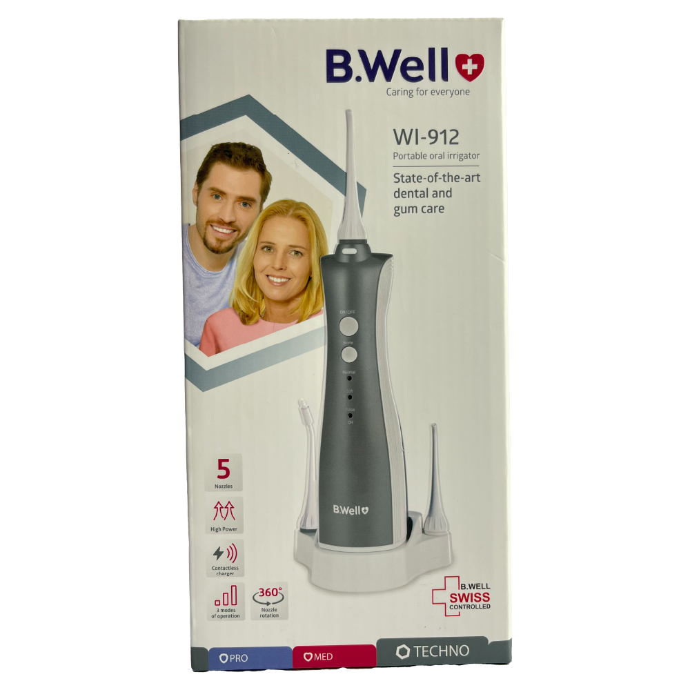 Máy tăm nước vệ sinh răng cầm tay cao cấp B.Well WI-912 chăm sóc và hỗ trợ toàn diện cho khoang miệng và kẽ răng. Chăm sóc khoang miệng, khi làm cầu răng, cấy răng, chụp răng, niềng răng và sử dụng các hệ thống chỉnh nha; massage nướu, sử dụng hàng ngày hoặc người đang niềng răng, cấy implant, cầu răng, mão răng …